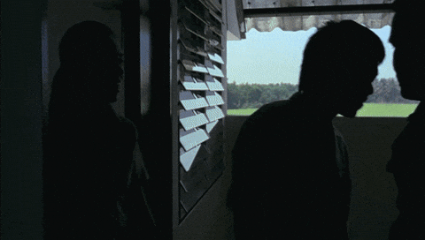 Камера ніби демонстративно не цікавиться людьми у цій сцені й, ніби демонструючи власну волю, рухається кудись в іншу сторону. Ми продовжуємо чути що герої кажуть, але бачимо поле із деревами за ним – спокійний пейзаж, в якому немає нічого людського. Окрім цього вона є дуже елегантним та дотепним способом представити титри, й треба згадати, що титри теж є виходом за межі уявного світу фільму. Вони порушують цілісність уявного світу та нагадують, що ми дивимося фільм.